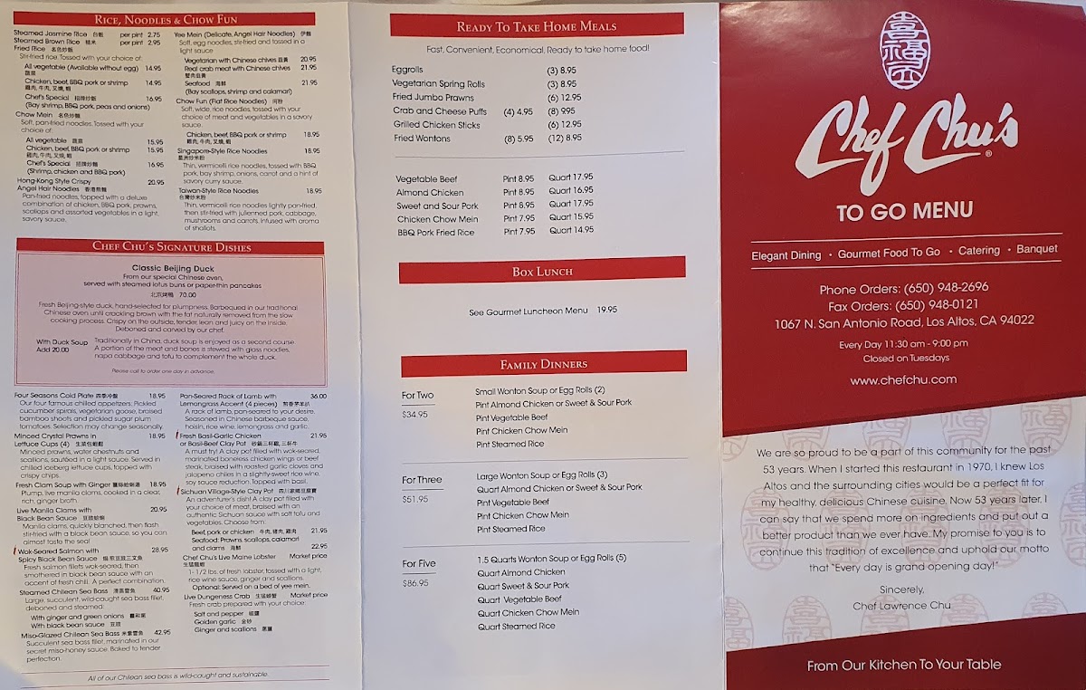 Chef Chu's Menu